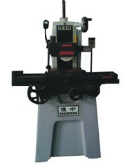 本机床可磨削各种平面和复杂成型面,适用于不需要机动进刀的磨削加工,主轴采用P4级精密滚动轴承、迷宫密封,防水防尘性能好,运动平稳、精度高。纵向采用滚珠钢导轨,操作轻便灵活,立柱采用大跨距形导轨,钢性好,稳定性高。整机采用手动油泵集中润滑。比614平面磨床X轴的行程要长一些! 技术规范 工作台 台面尺寸(宽×长) mm 150×450 工作台横向行程 mm 178 工作台纵向行程 mm 483 工作台T型槽(槽数×槽宽) mm 1×14 磨头 砂轮轴中心线至工作台面最大距离 mm 360 垂直进给手轮进给量 手轮每转 mm 1.25 手轮每转 mm 0.01 横向进给手轮进给量 手轮每转 mm 2.5 手轮每转 mm 0.01 砂轮轴转速 r/min 2850 砂轮尺寸(外径×宽×内径) mm Φ180×13×Φ31.75/32 工作精度 加工表面对基面的平行度 mm 300∶0.005 表面粗糙度 μm Ra0.32 机床重量 净重 kg 680 毛重 kg 730 电动机总功率 kw 1.14 磨头电机功率 kw 1.1 外形尺寸(长×宽×高) mm 1550×1100×1680 http://www.yozocnc.com